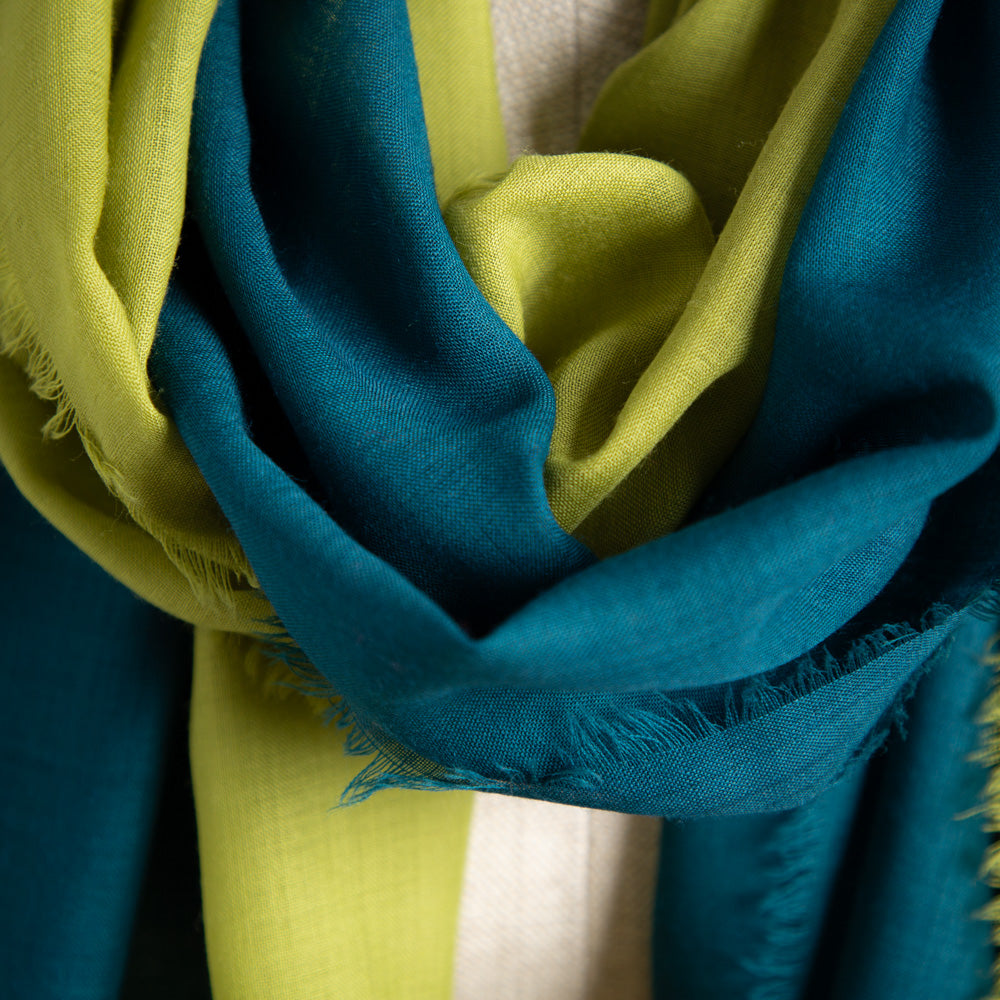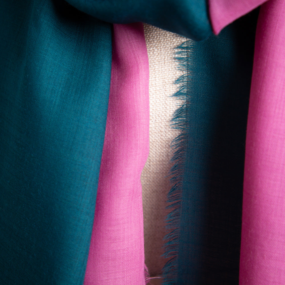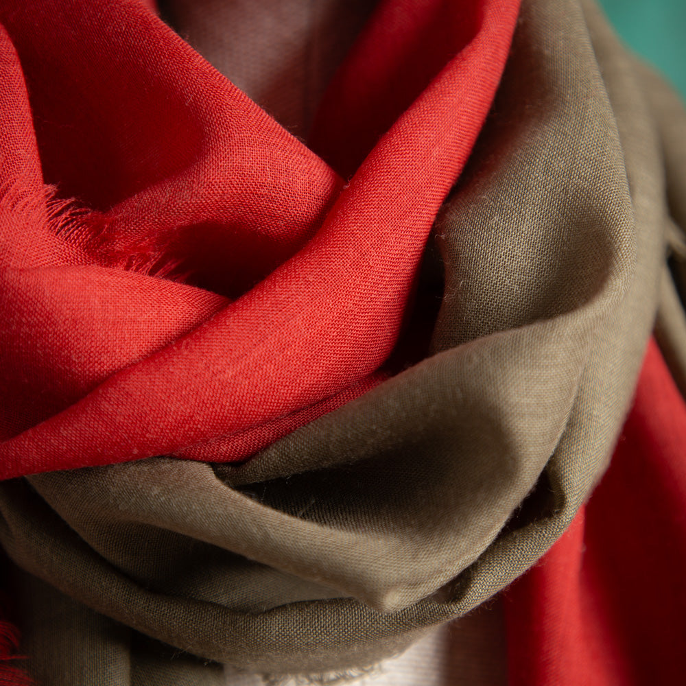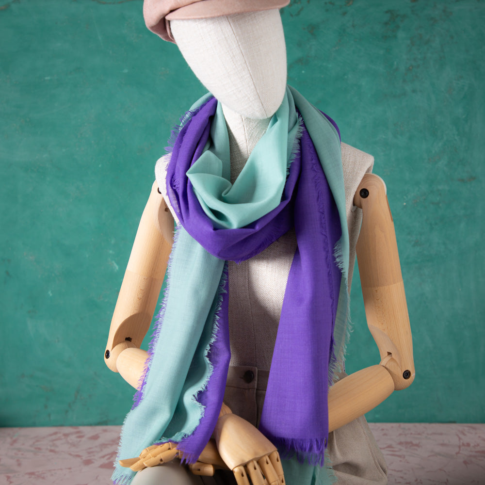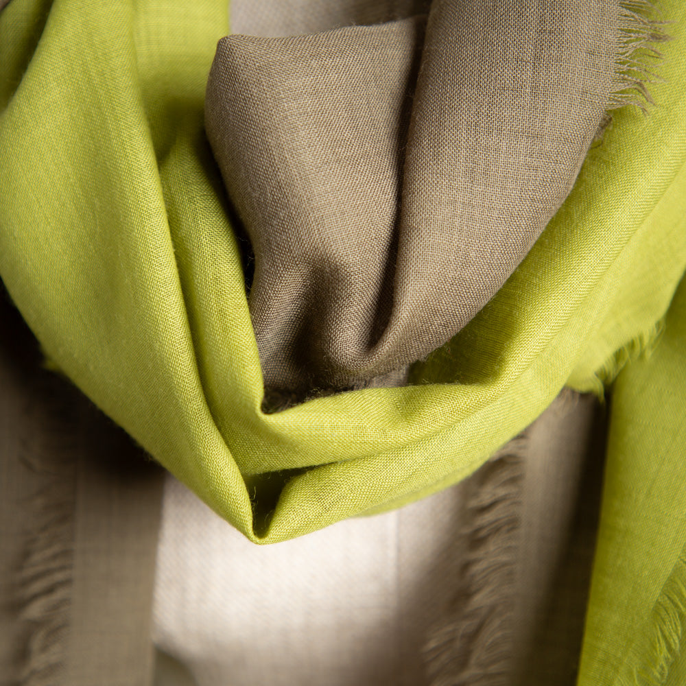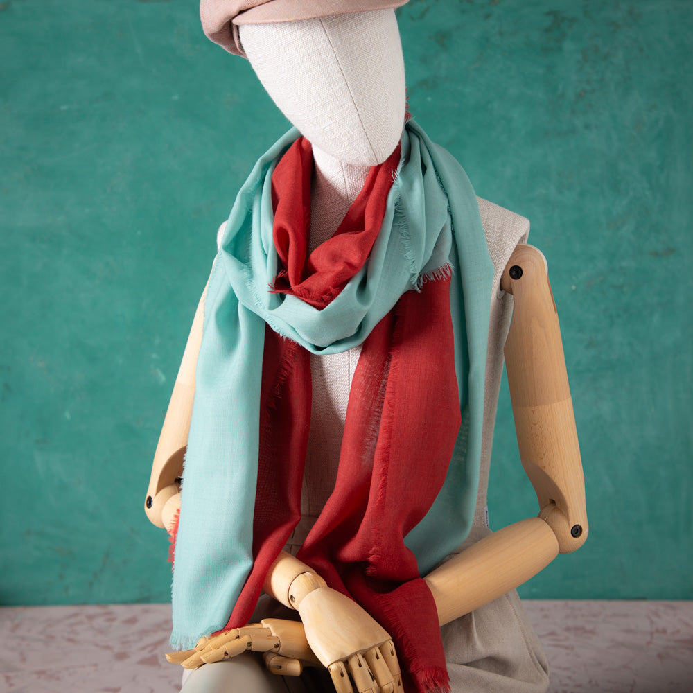 Einzeln getragen ist der Wollschal ideal für milde Temperaturen oder Innenräume – leicht, unbeschwert und trotzdem wärmend.
