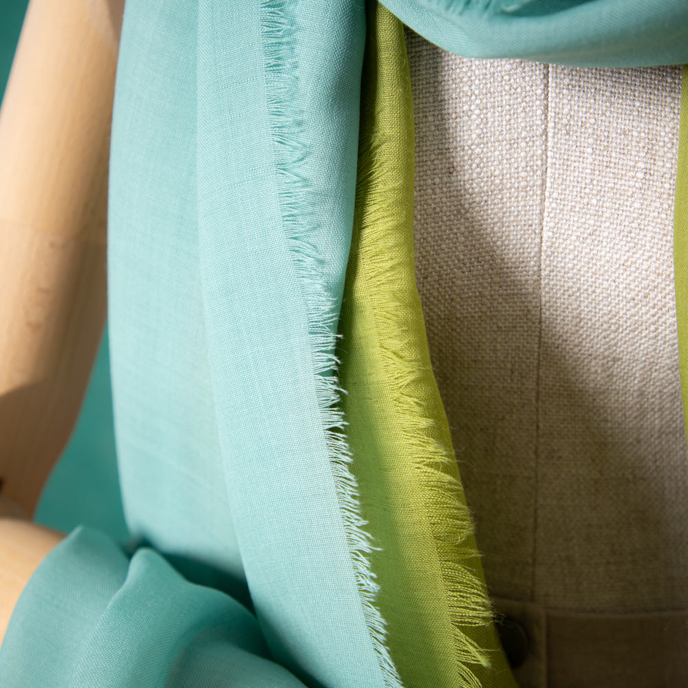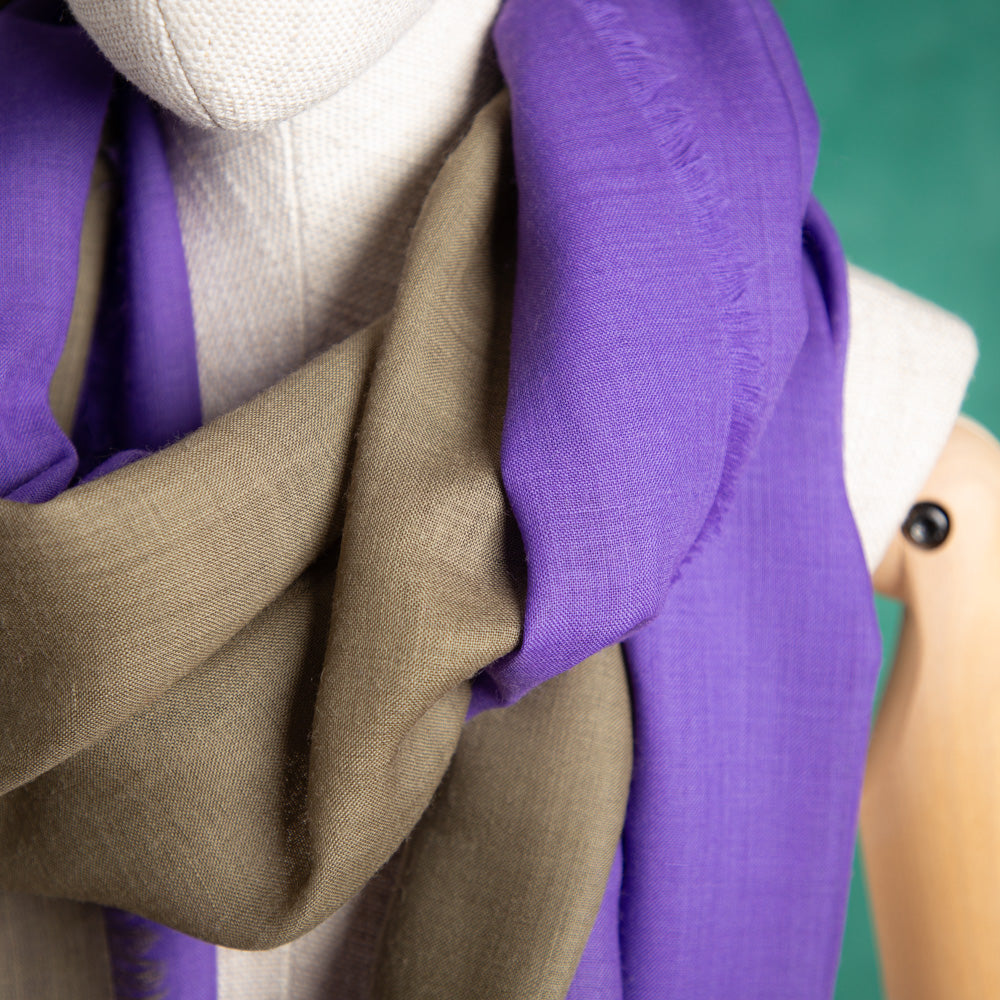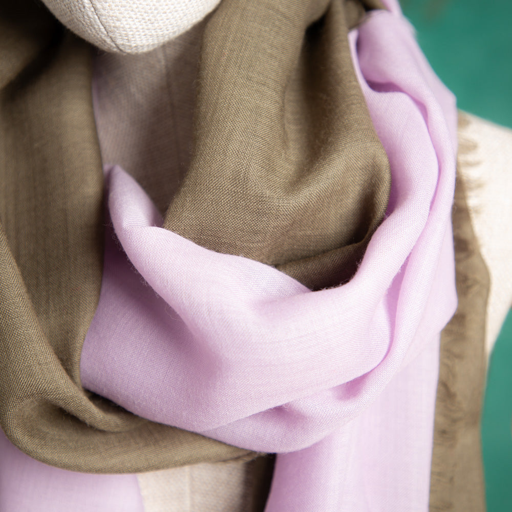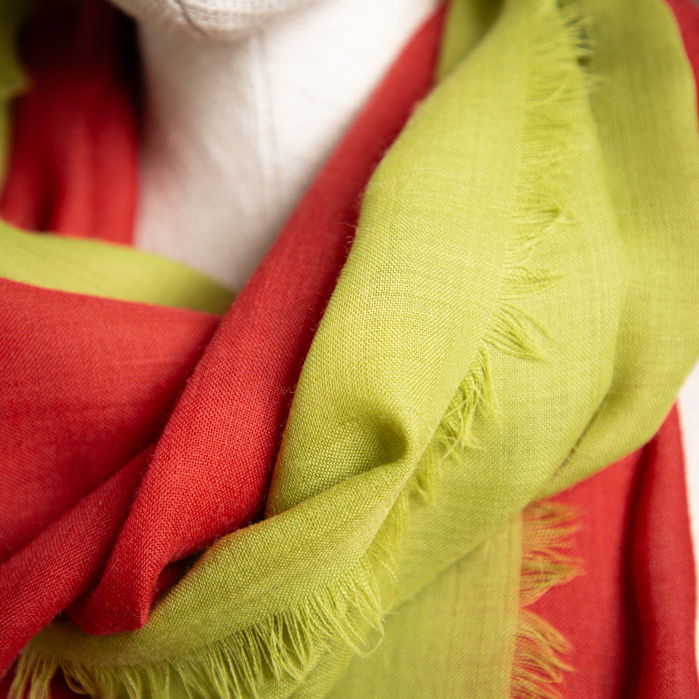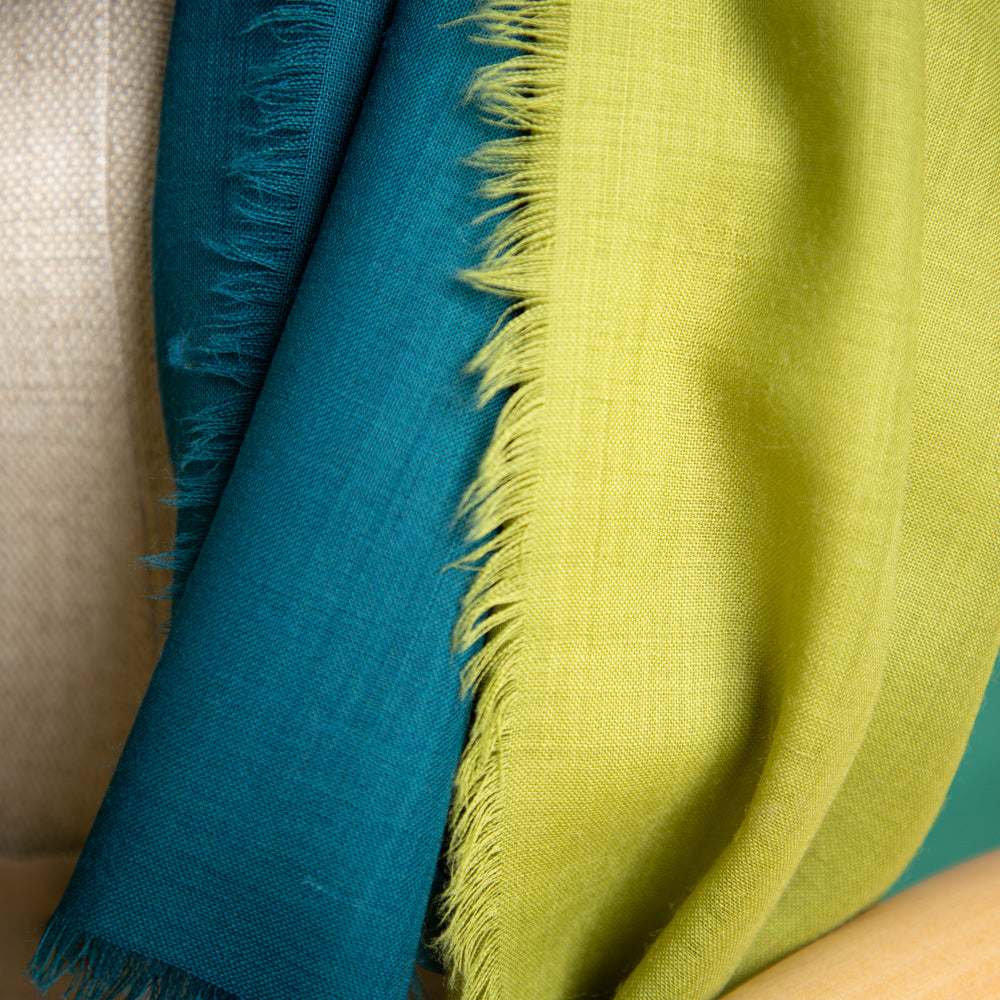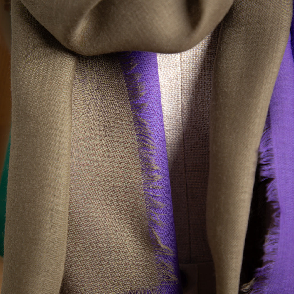 Einzeln getragen ist der Wollschal ideal für milde Temperaturen oder Innenräume – leicht, unbeschwert und trotzdem wärmend.