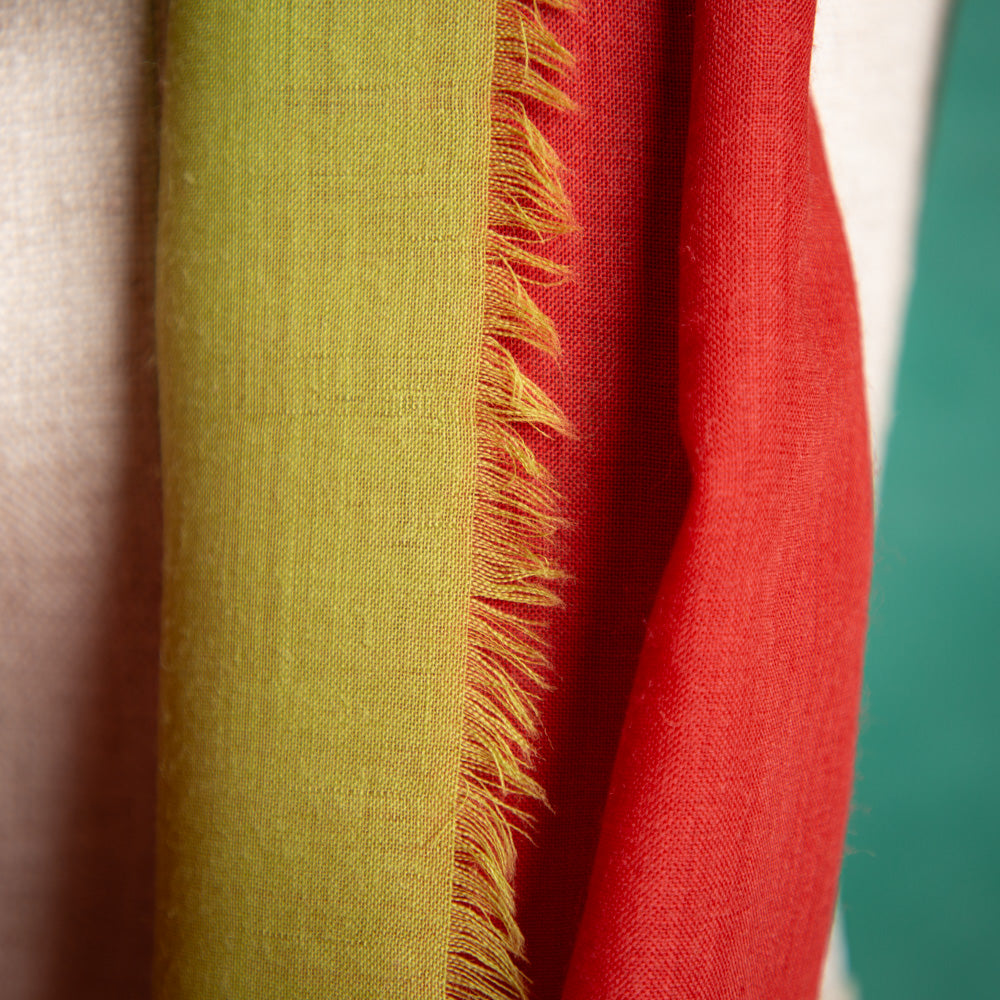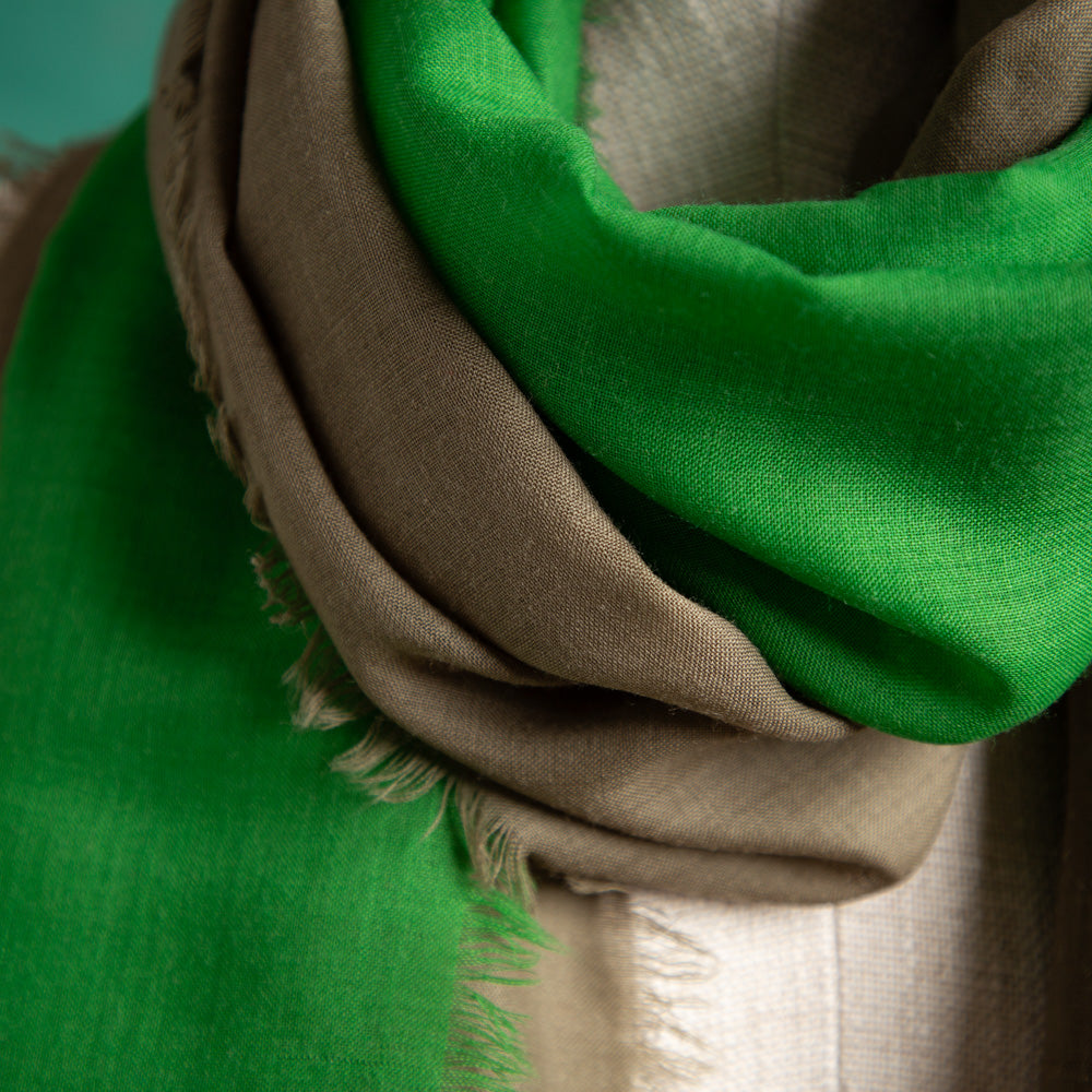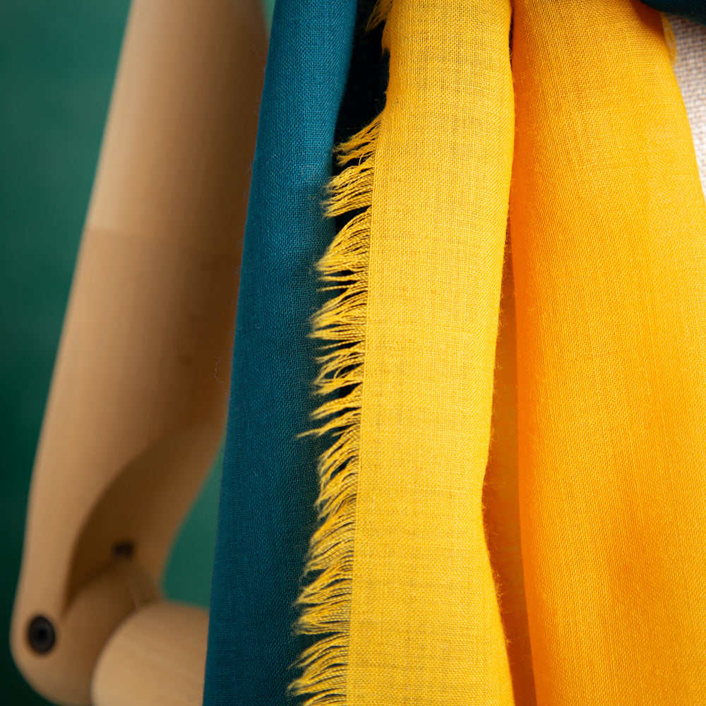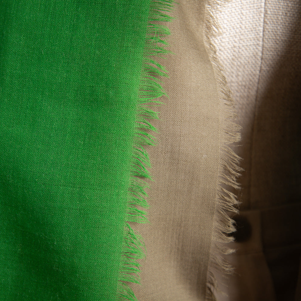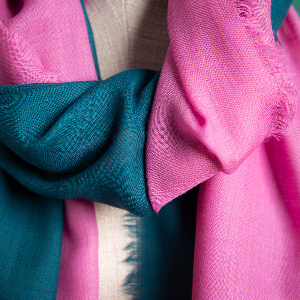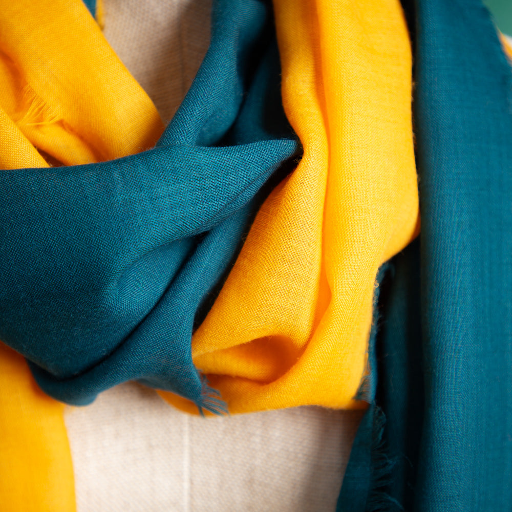 Einzeln getragen ist der Wollschal ideal für milde Temperaturen oder Innenräume – leicht, unbeschwert und trotzdem wärmend.