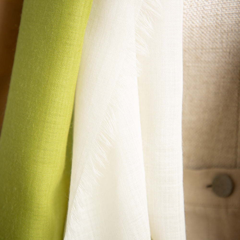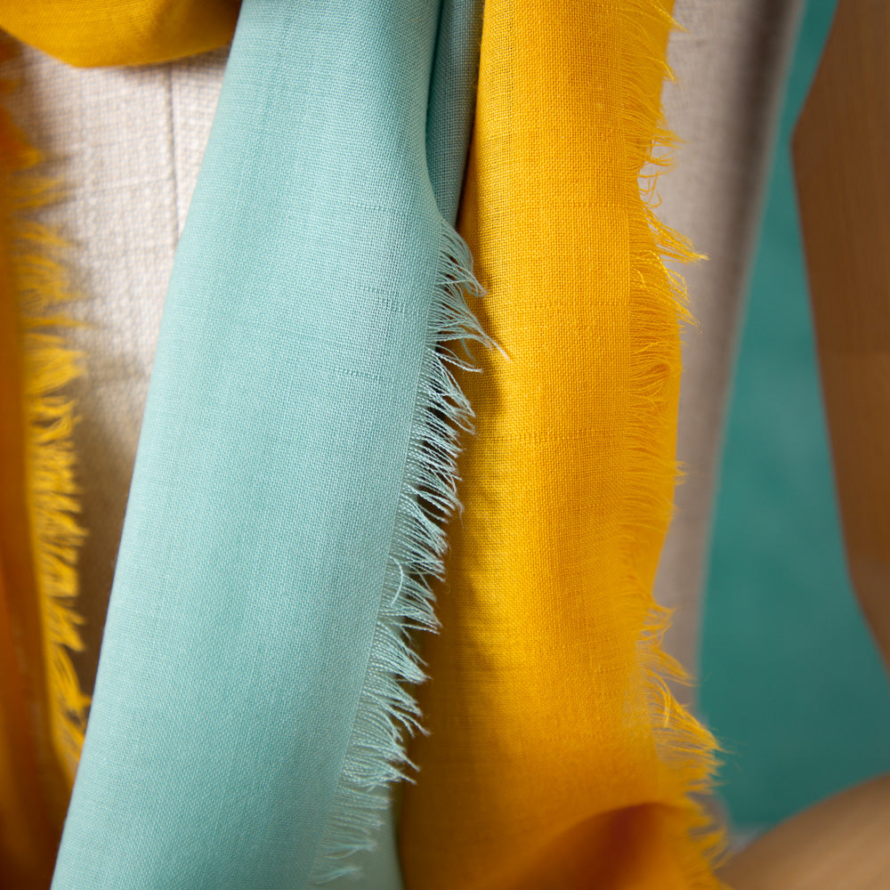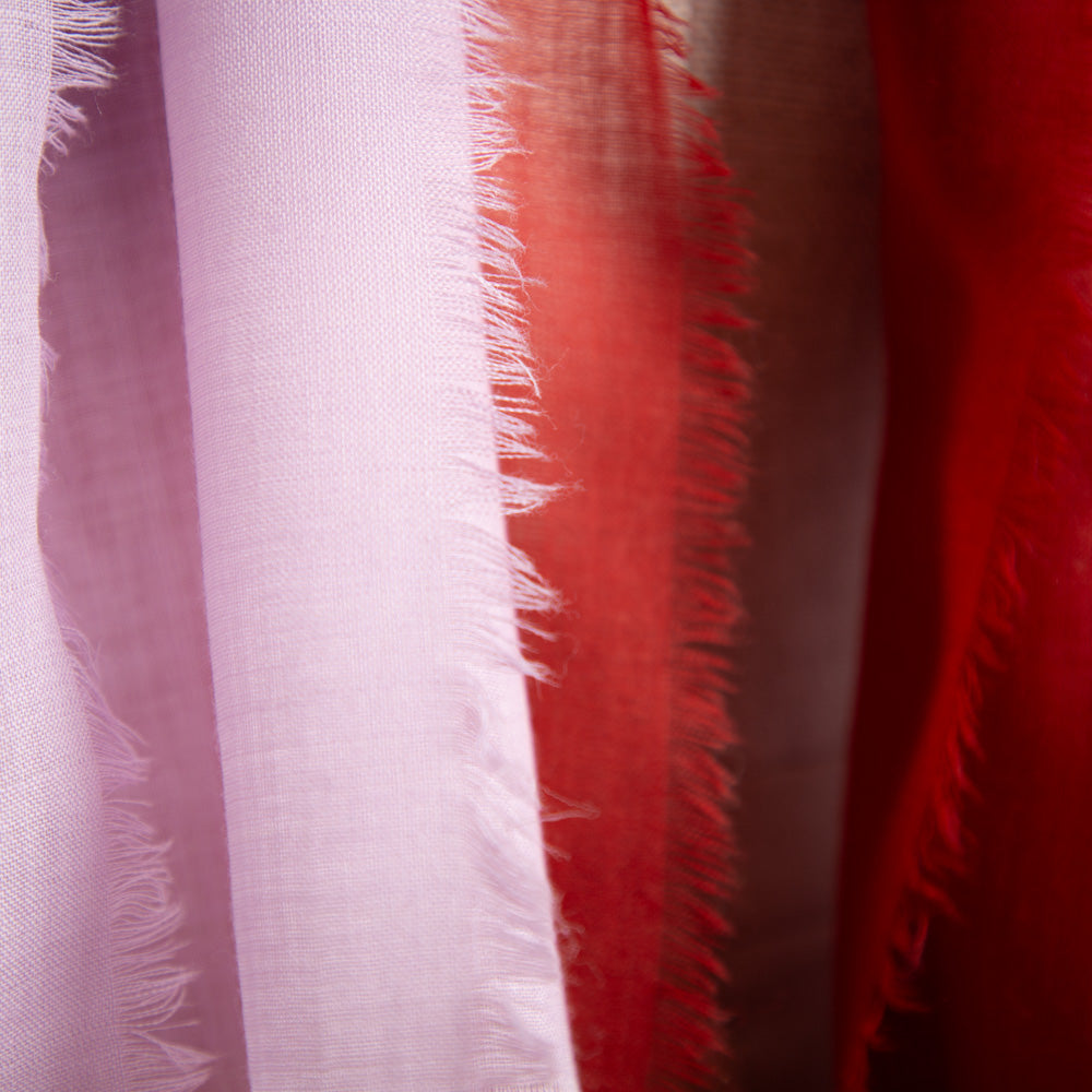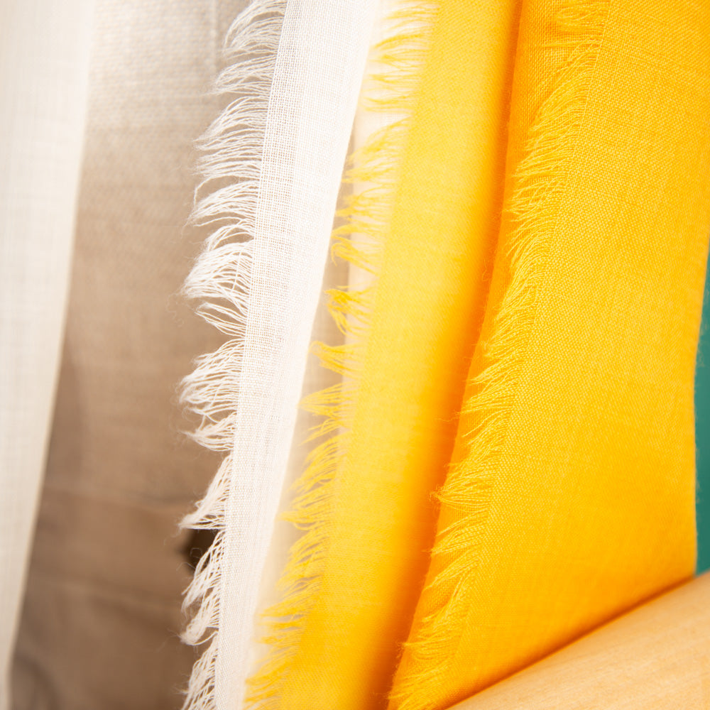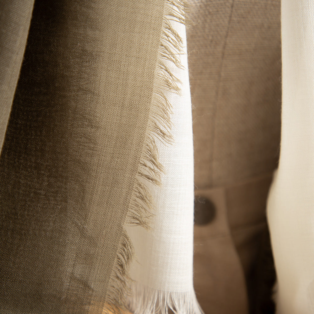 • An den Seiten zart ausgefranst, ohne Saumnaht – für einen weichen, natürlichen Fall