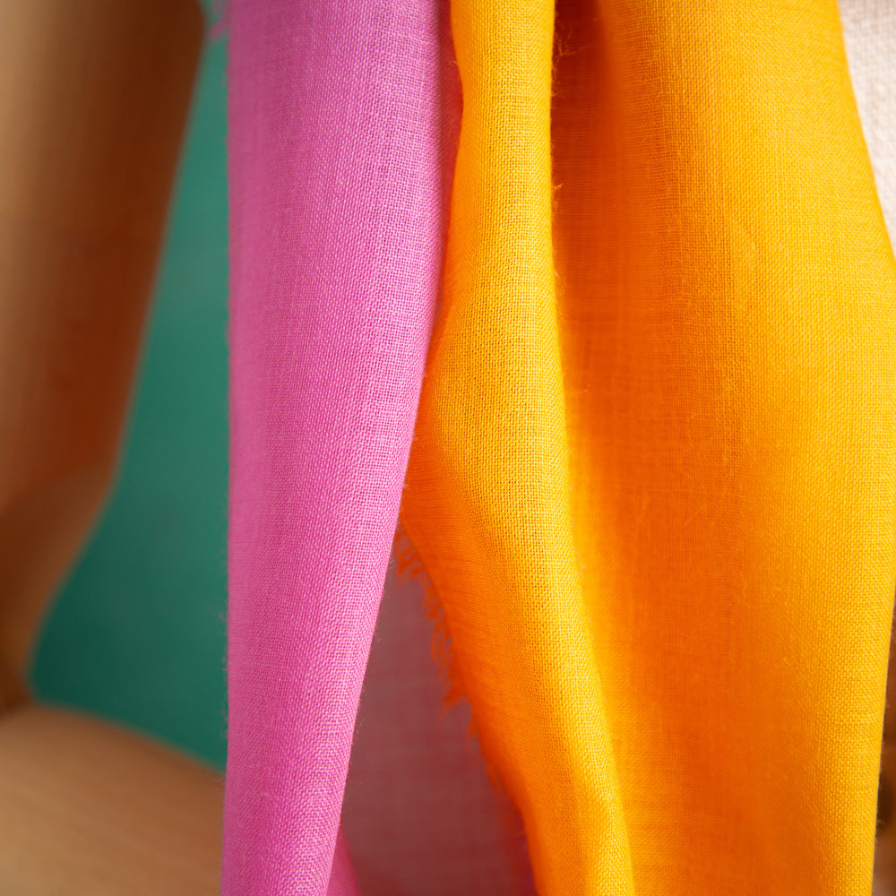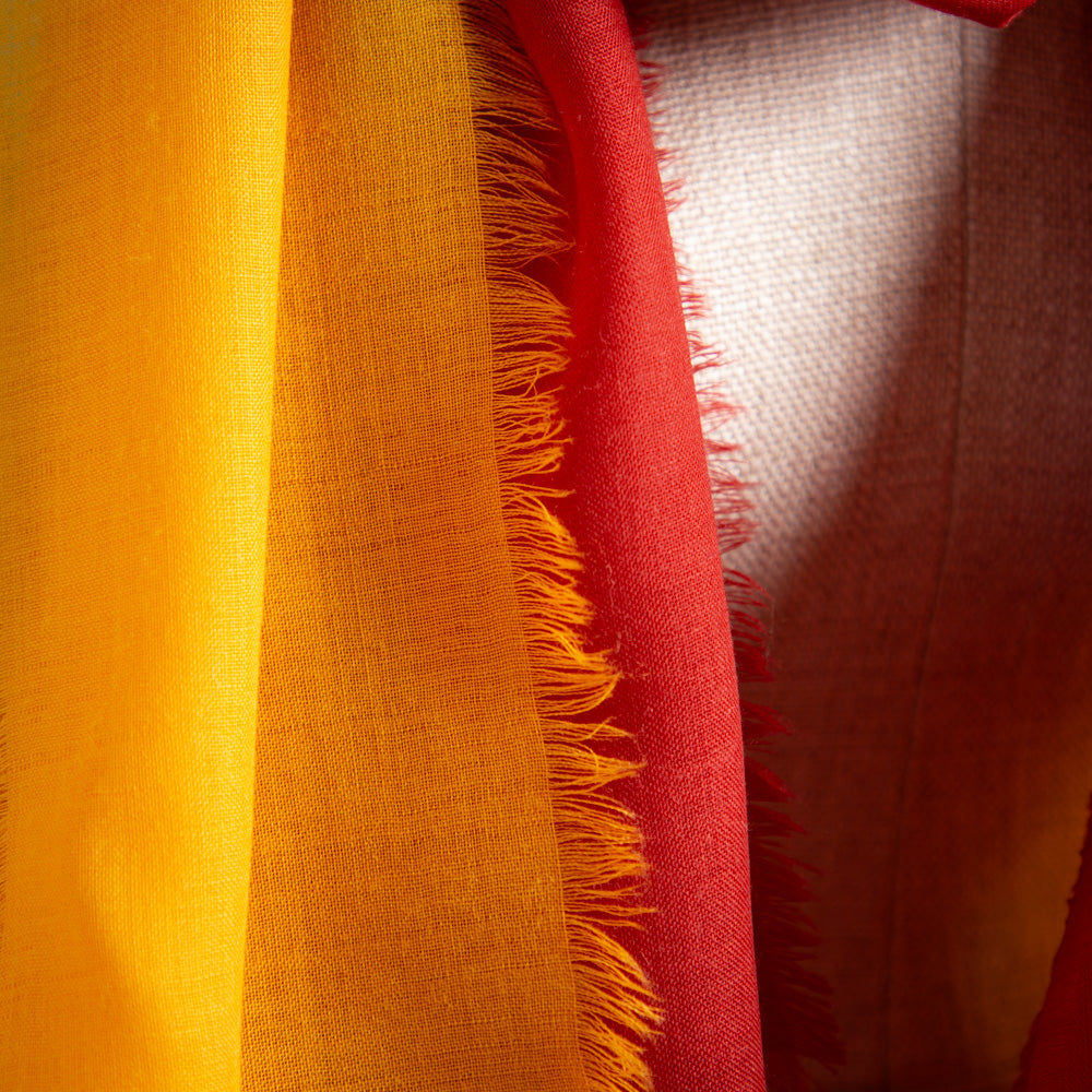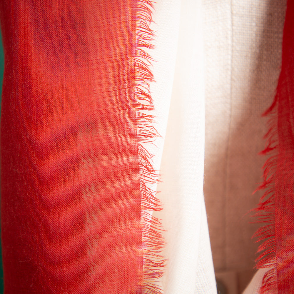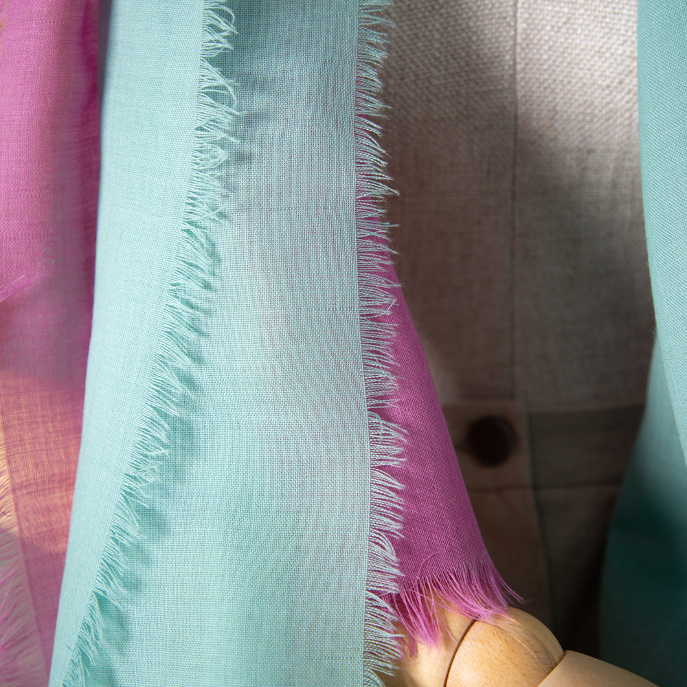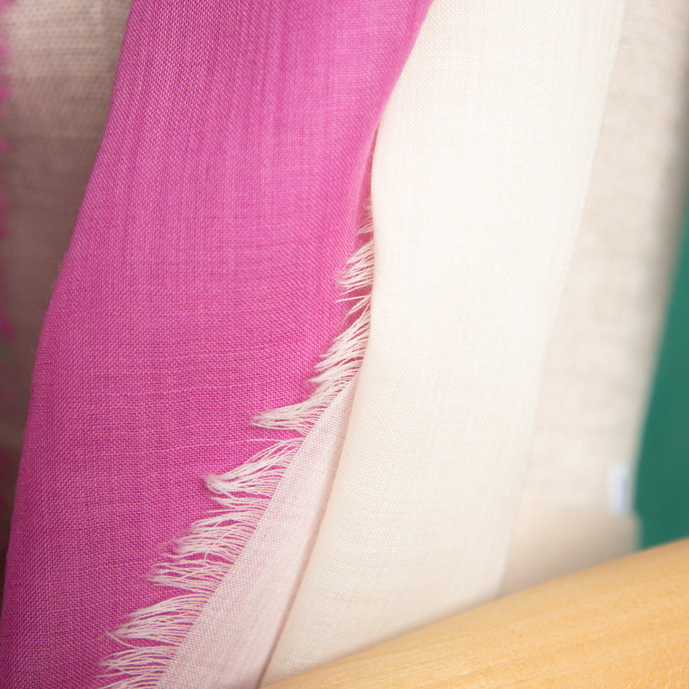 • An den Seiten zart ausgefranst, ohne Saumnaht – für einen weichen, natürlichen Fall