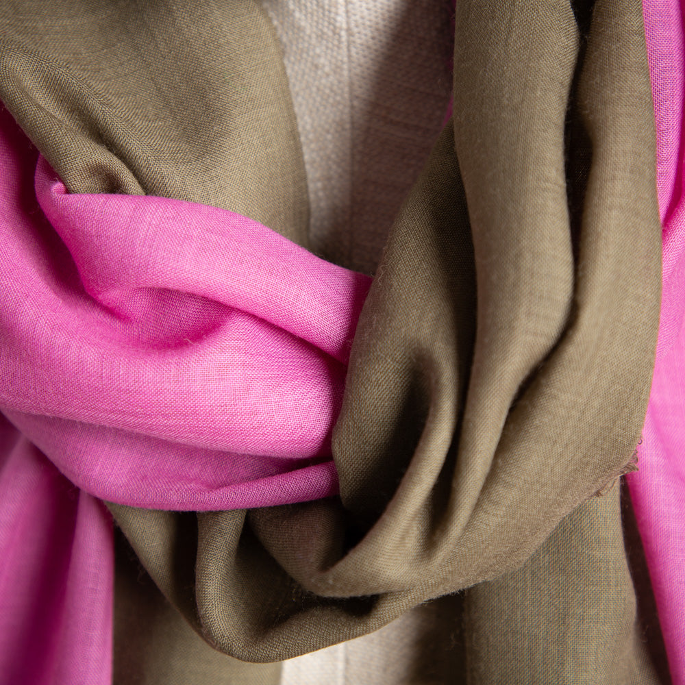 Einzeln getragen wirkt der Schal dezent und elegant. Wenn du ihn doppelt legst und die Stoffschichten nach dem Umlegen leicht auseinanderziehst, entsteht ein schönes Volumen und ein weicher Fall – ganz ohne Hitzestau oder zu viel Stoff am Hals.