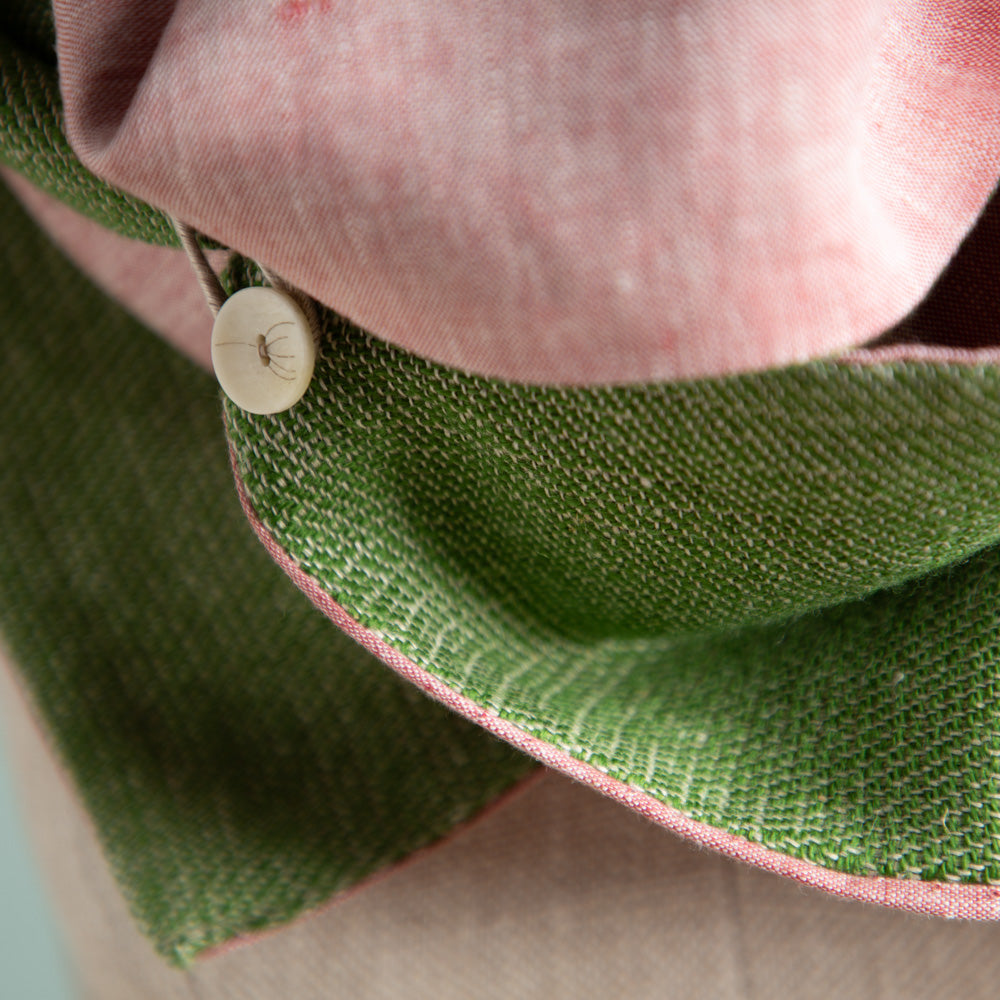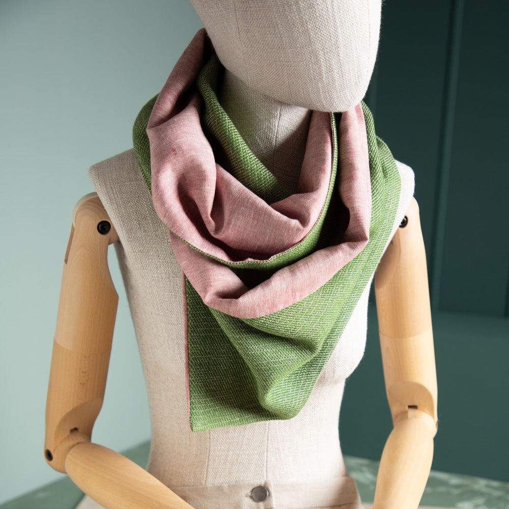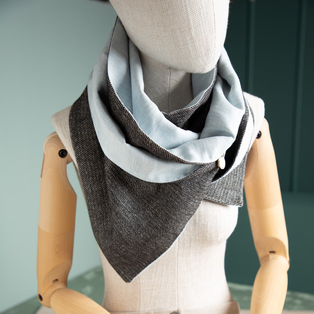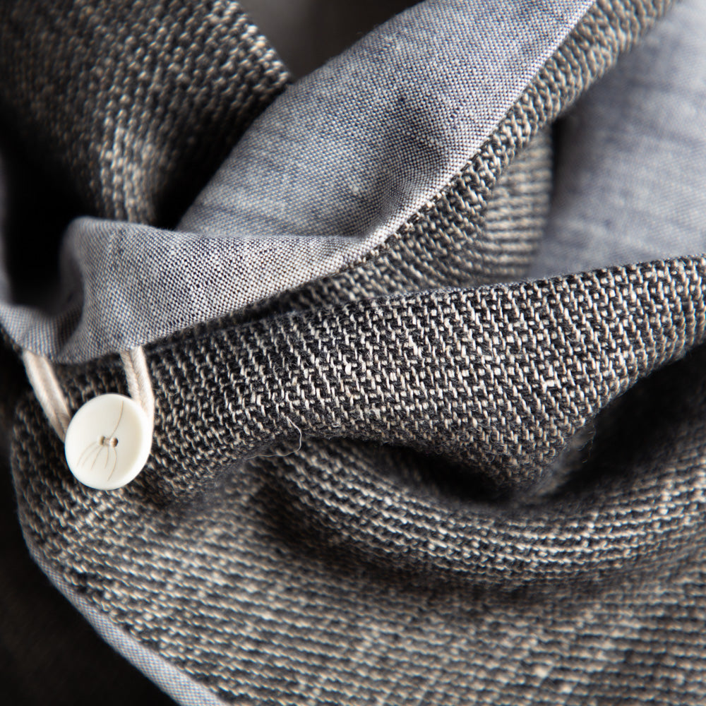 Dieser zweilagige Schal verbindet die Wärme eines Wolle-Leinen-Gemischs mit der weich abgefütterten Innenseite aus reinem Leinen. Durch die zweifarbige Gestaltung wirkt er nicht nur dekorativ – er trägt sich wie ein kleines Kleidungsstück, das deinen Stil sofort aufwertet.