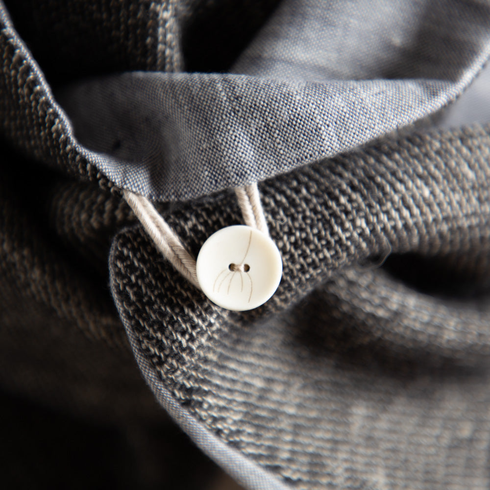 Durch den Knopf bleibt er so in Form, rutscht nicht und fällt schön.