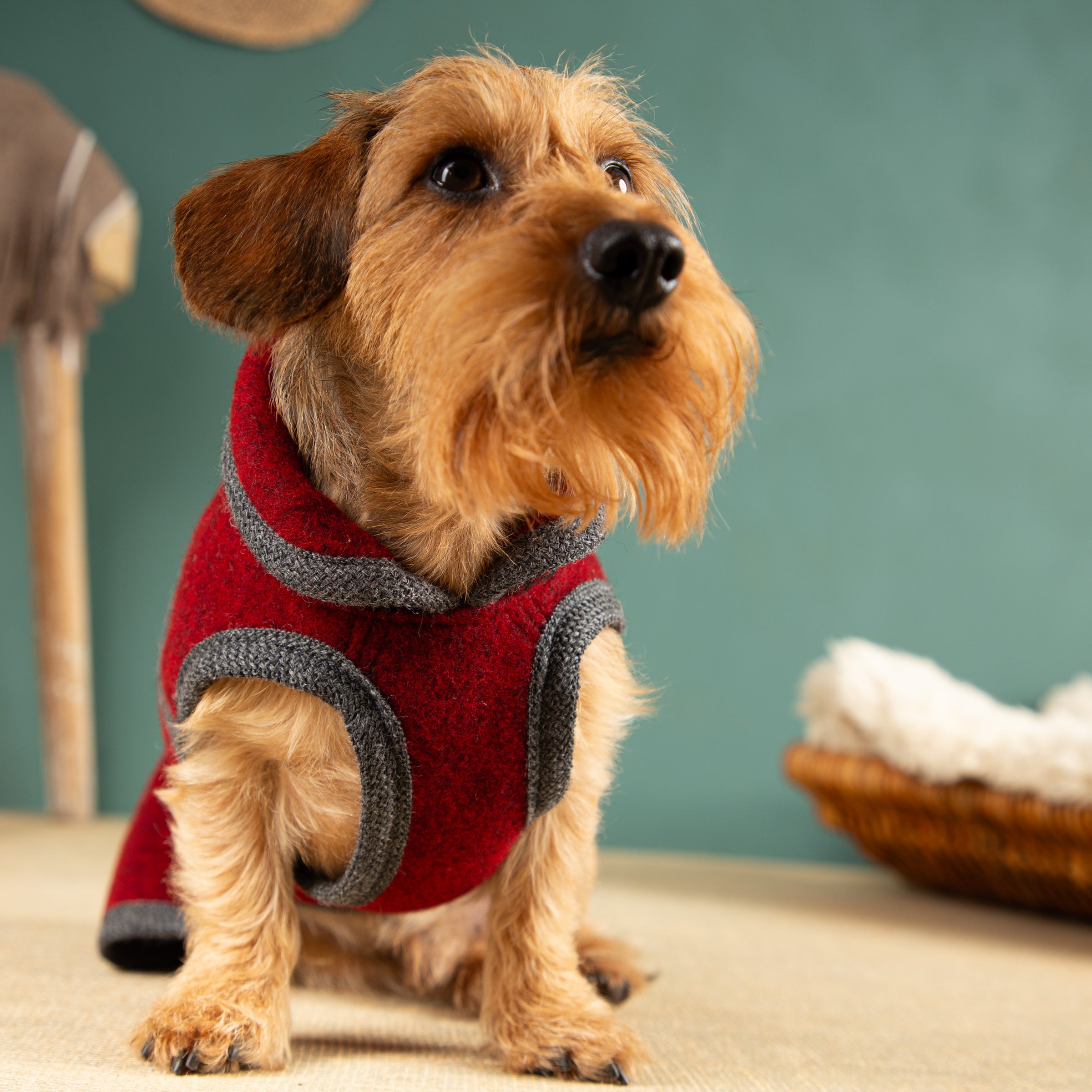Ein kühler Herbsttag, kalter Wintermorgen oder ein verregneter Tag – und Dein Dackel bleibt trotzdem angenehm warm: Unser warmer Hundemantel aus 100% Schurwolle wurde speziell für die besondere Körperform von Dackeln entwickelt. Er schützt zuverlässig vor Kälte, Wind und Feuchtigkeit und sorgt gleichzeitig für eine optimale Bewegungsfreiheit – damit Dein Hund den Spaziergang rundum genießen kann.