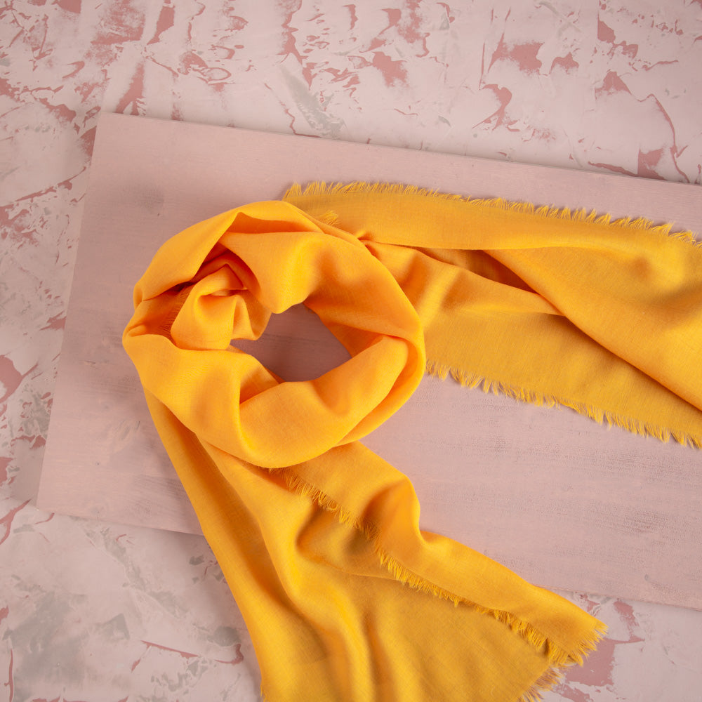 Jedes Tuch wird aus besonders dünn ausgesponnener Bio-Merino-Wolle gefertigt – so fein, dass es leicht transparent wirkt und gleichzeitig atmungsaktiv bleibt. Durch den bewussten Verzicht auf Nähte bleibt das Gewebe unversehrt und fällt besonders weich. Die weichen Fransen an den Rändern sorgen für lässige Eleganz.