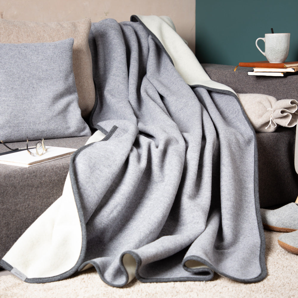 Wolldecke | Warme Lodendecke aus reiner Schurwolle | grau-creme