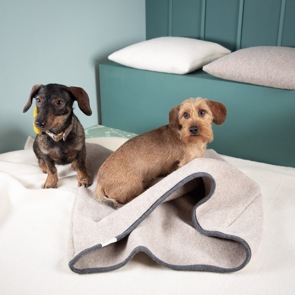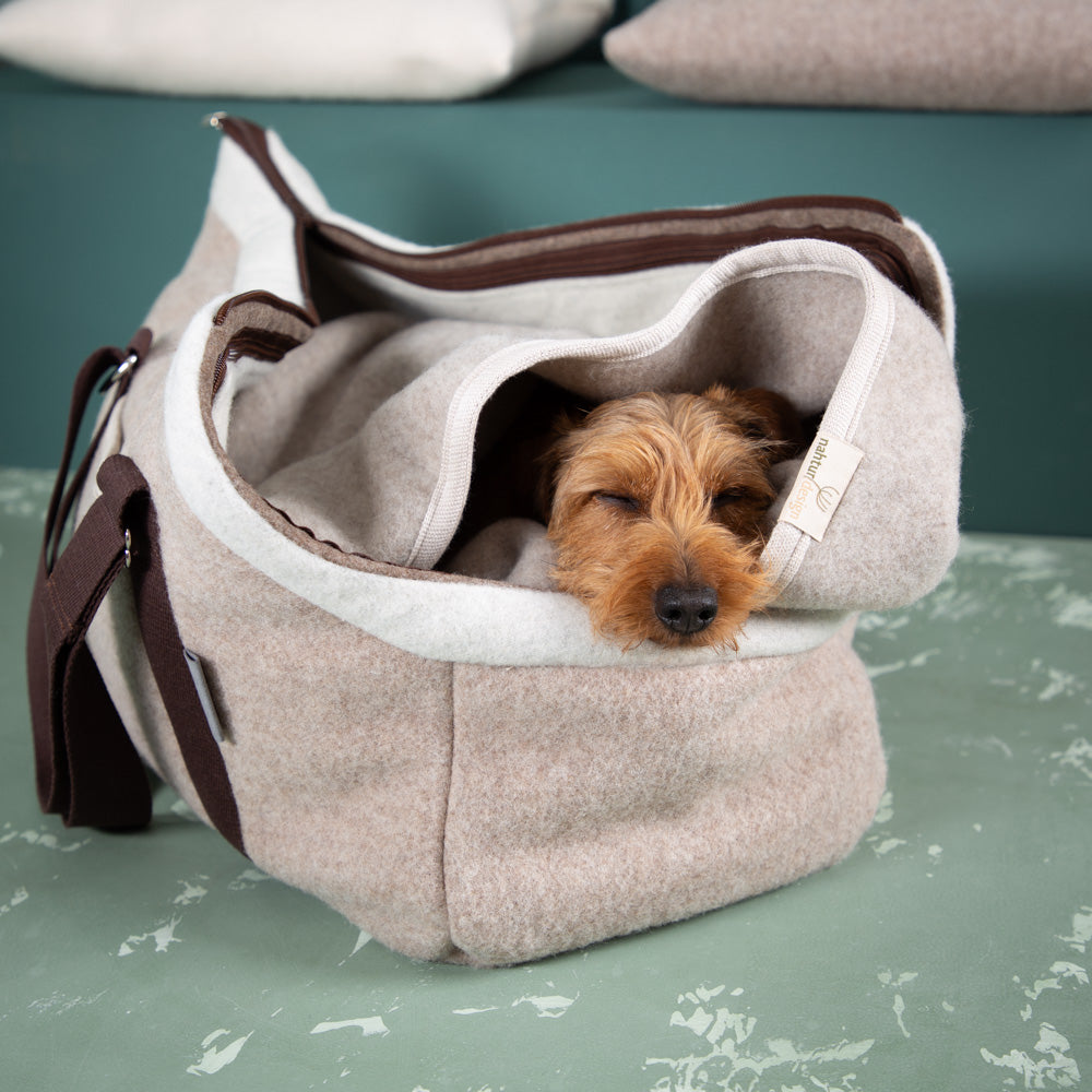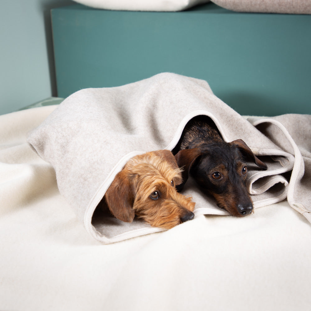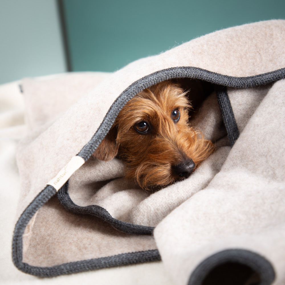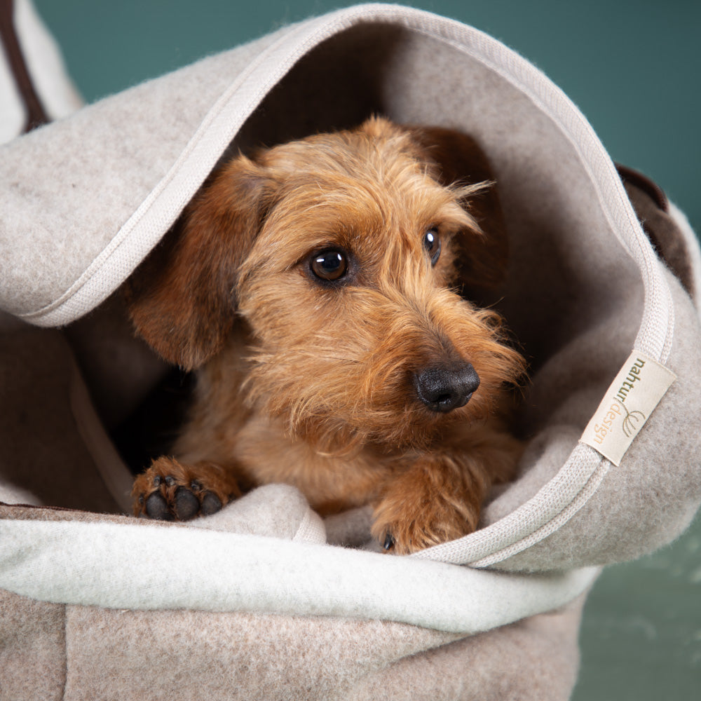 Wenn Hunde sich gerne einkuscheln, dann ist dieser Schlafsack genau das Richtige. Er schenkt Geborgenheit, wohltuende Wärme und das Gefühl, rundum beschützt zu sein – ganz ohne Überhitzung. Die feine, ungefärbte Merinowolle aus der Mongolei umhüllt den Hund wie ein sanftes Nest – atmungsaktiv, temperaturausgleichend und wunderbar weich.