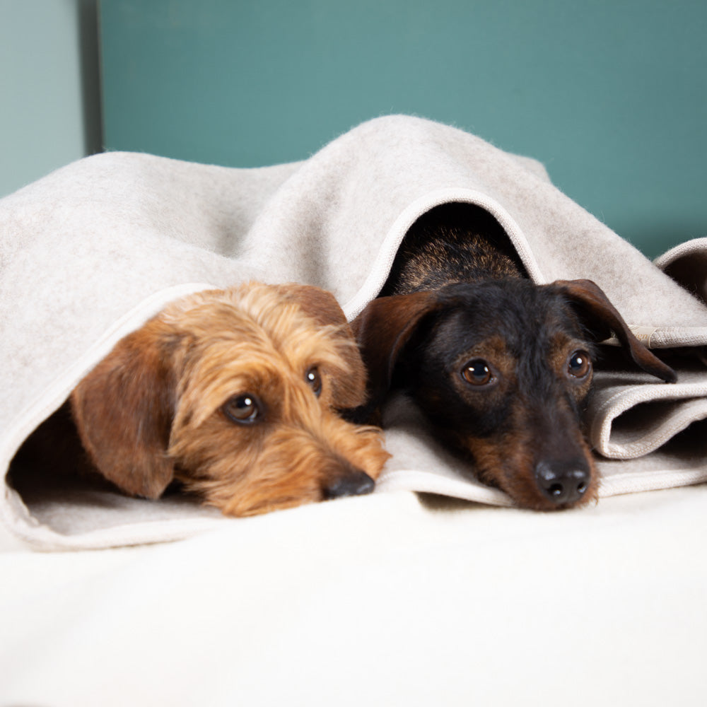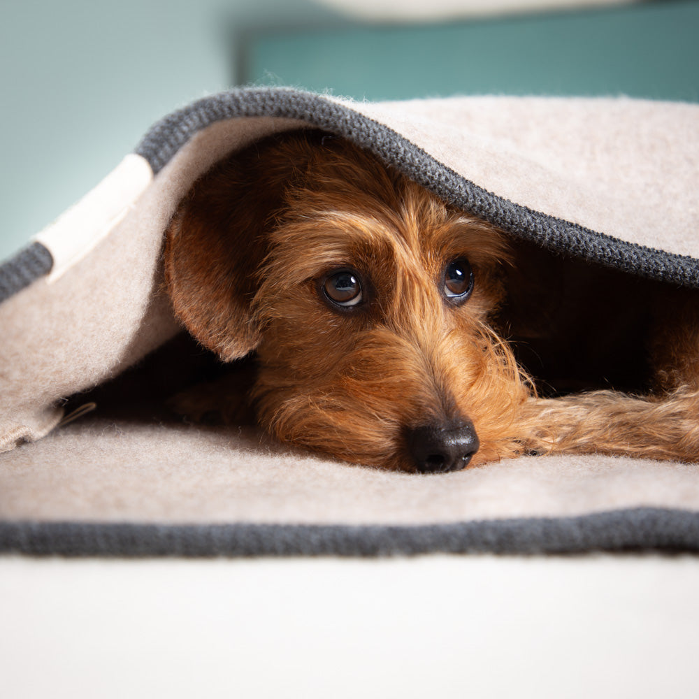 Nachts im Körbchen, wenn sich dein Hund gerne zudeckt, oder auf dem Sofa – als gemütliche Ergänzung zur Decke. Auch in der Hundetasche oder nach einem Spaziergang im Regen sorgt er für wohlige Wärme und schnelles Aufwärmen. Unterwegs, im Café oder im Büro bietet er eine vertraute Kuscheloase, die immer mit dabei sein kann. Und wer möchte, nutzt ihn einfach als gepolsterte Decke, wenn der Hund nur darauf liegen möchte.