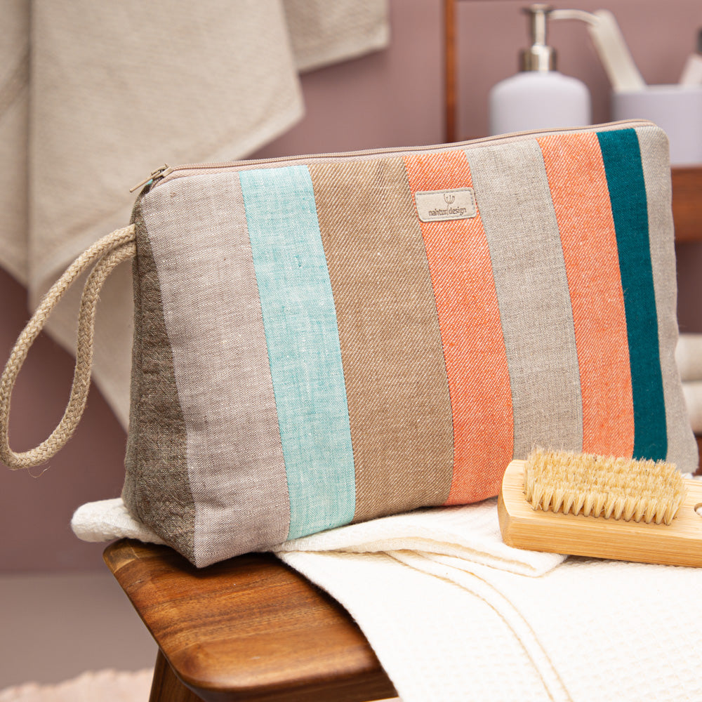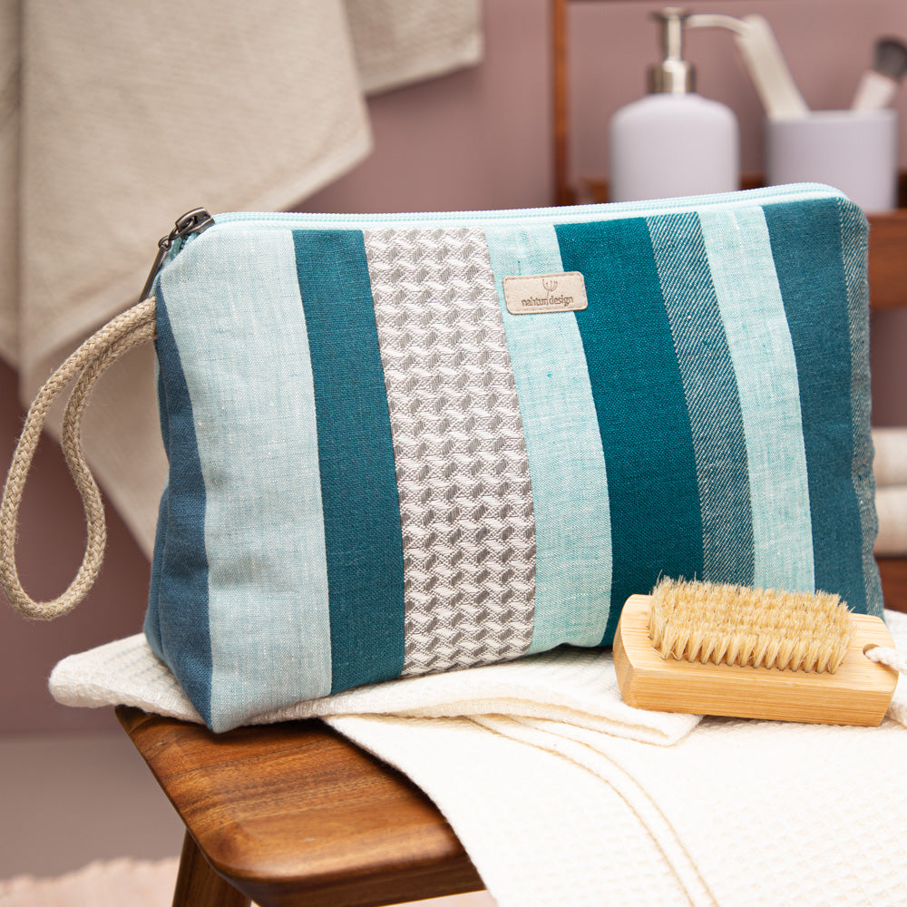 Wenn du auf der Suche nach einer nachhaltigen, langlebigen und ästhetisch ansprechenden Kulturtasche bist, die perfekt zu deinem umweltbewussten Lebensstil passt, dann ist diese Kulturtasche aus Leinen genau das Richtige für dich. Jede Kulturtasche ist ein Unikat und zeigt, dass Nachhaltigkeit auch schön sein kann. Ob auf Reisen, im Alltag oder beim Wochenendausflug – dieser Kulturbeutel begleitet dich zuverlässig und umweltfreundlich.