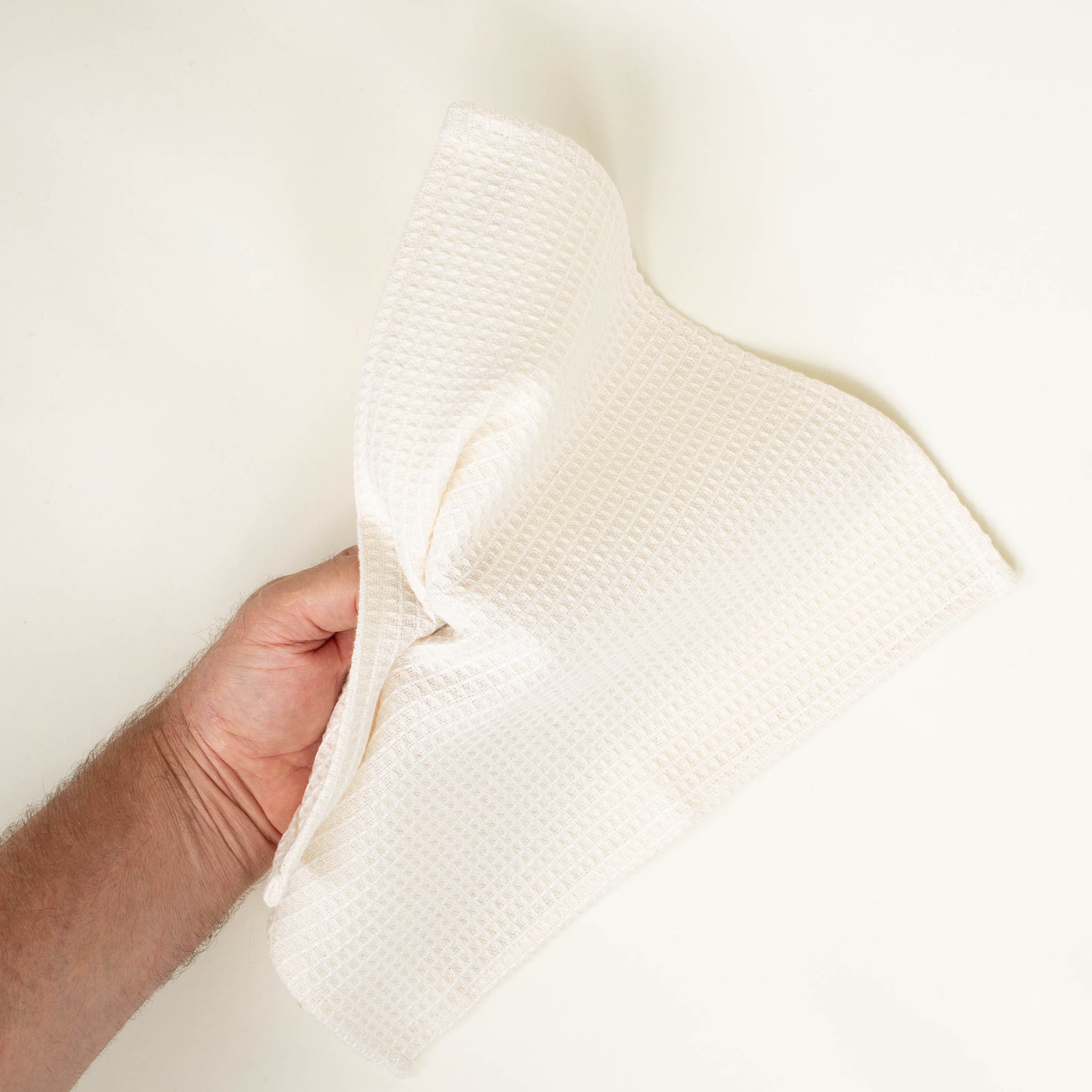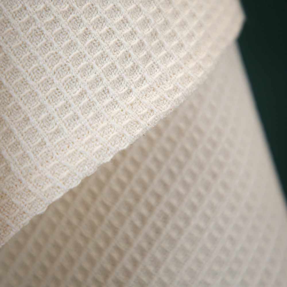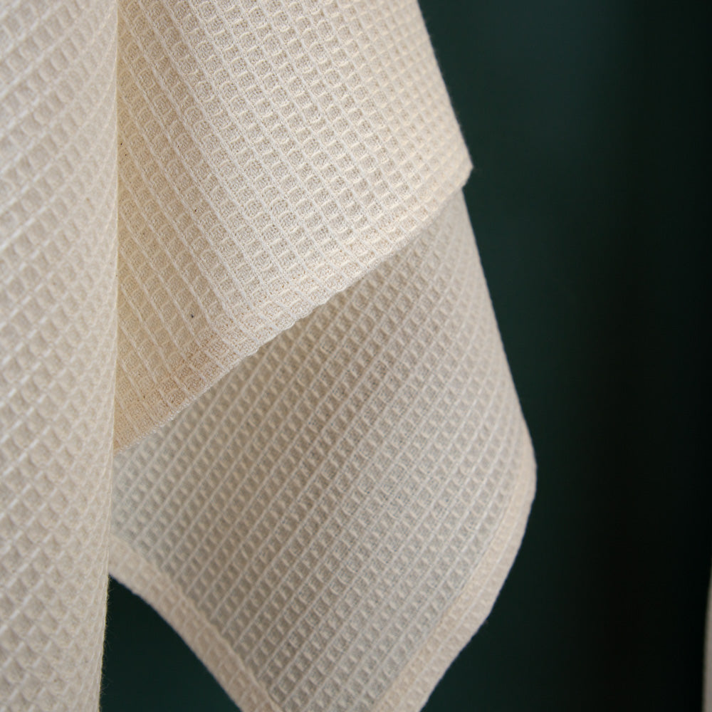 Halbleinen vereint die besten Eigenschaften von Flachs und Baumwolle: Es ist saugfähig, robust und hautfreundlich. Die Waffelstruktur erhöht die Oberfläche – dadurch nehmen die Tücher Feuchtigkeit besonders schnell auf und trocknen im Handumdrehen wieder. Im Vergleich zu herkömmlichem Frottee sind sie leichter, platzsparender und luftiger – ideal auch für unterwegs.