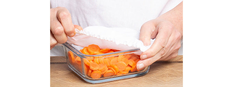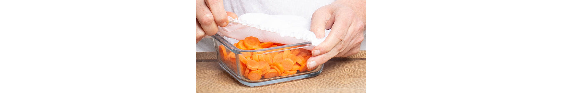 Wer kennt es nicht: Man hat eine Schüssel mit Resten im Kühlschrank stehen und möchte sie abdecken, um sie frisch zu halten. Meist greift man dann zu Frischhaltefolie oder Plastikdeckeln. Doch auch hier gibt es eine umweltfreundliche Alternative: Unsere Schüsselhauben aus Bioleinen. Sie sind elastisch eingefasst und passen sich jeder Schüsselgröße an. Zudem sind sie atmungsaktiv und halten das Essen länger frisch. Durch den Feuchtigkeitstransport wird Kondenswasser vermieden und Dein Lebensmittel schimmelt nicht.