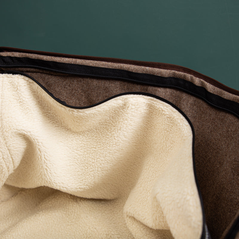 Flauschloden sorgt für eine gemütliche, weiche Liegefläche und setzt zugleich einen schönen farblichen Akzent passend zur Tasche. Die reine Schurwolle hält angenehm warm und schafft eine besonders behagliche Atmosphäre für deinen Hund.